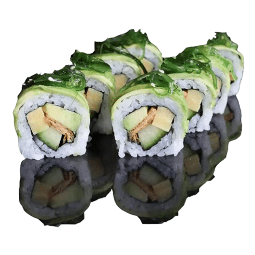 22 stuks. Uramaki veggie, maki komkommer, nigiri inari, futo maki veggie, temaki veggie en sojabonen